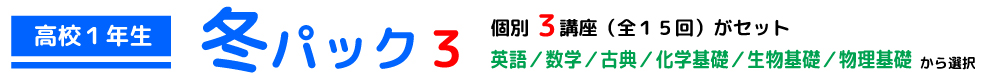 今年の高校1年生の冬期講習は全て個別授業で、より効果的で効率良い指導で成績を伸ばしていきます! 科目は「英語」「数学」「古典」「化学基礎」「生物基礎」「物理基礎」の中から自分に合わせて選択でき、指導内容も学校予習や復習の他に学校の冬休み宿題にも対応しています。